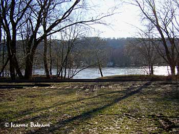 Here, late Sunday afternoon, the sun was heading down in the blue western sky and the Delaware rushed madly by. Brown-ish blue, the water was very high and its speed dangerous. But in all its moods, whether languidly dreaming or racing to the sea, the river is a richness and a gift to be near.