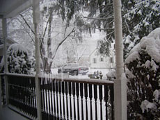 Looking out my living room window and across the side portion of my wraparound front porch, it’s snow just as far as the eye can see. The plow comes through every now and then, but not so often. I suspect overnight, when the snow starts to let up, they will make more headway.