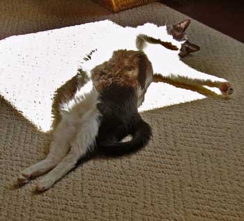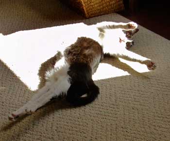 I was wrong. Dance is his life. It seems, as he has matured, that floor ballet has become his everything. While it’s true that he has brought the art to sofa and bed, it is the floor ballet which is his heart and soul. The sun is his greatest inspiration, but he happily jetés on the floor under so many circumstances, he has simply become an inspiration.