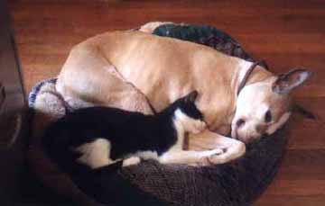 A little over 13 years ago, one of my two pit bull terriers passed away from complications of cancer. She had been starved and brutally abused. She’d had a very high prey drive and was dog aggressive, but she thrived in my care, and in time, also did so with my other pit bull terrier, Chloe. Chloe was at the opposite end of the spectrum; she truly loved ALL animals. With Chloe then twelve years old, I wanted her to truly enjoy her golden years with me and without the competition of another dog. But I knew she’d love a cat, and I began my search.