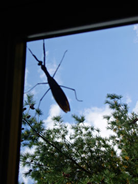 Perhaps a week or so after the spider’s web had disappeared, a seemingly small monster – from this side of the glass – cast a large shadow in the same window. A Chinese praying mantis. Where had he come from? Last year, a green praying mantis hung out all season on or around my office window, where we had several conversations and a few photo shoots. But I’d never seen the larger and brown Chinese mantis since I’ve lived here. He did his monster shadow for the morning, and then flew about my front and side porches in the awkward way they do, like a helicopter with a broken blade. No doubt he was scouting out a last meal as well. He, too, soon disappeared.