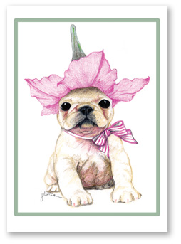 If you enjoyed the image of the little French Bulldog with a flower hat that I posted a short while ago, you’ll be happy to know that you can now send her adorable little self out to friends, family or anyone with whom you’d like to share a smile.