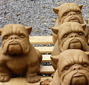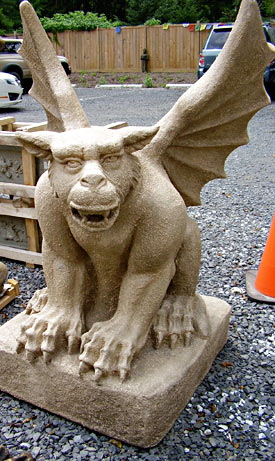 The gargoyles come in two finishes – the bronze type patina and the rough, sand-like texture. These are surprisingly lighter than you might imagine, and largely hollow. Unlike the bulldogs, which are solid cement and weigh a ton. Every time I visit Two Buttons, I yearn for the type of property which would afford me a walled garden that someone who knew wayyyyy more than me would plant and maintain. It would have winding walks, stone resting benches where one could stop and read or meditate, and, of course, fabulous statuary. Ahhhh — maybe next lifetime.