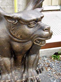 Starting out with breakfast at a favorite restaurant in Frenchtown, Lovin’ Oven, (a post for another time), we made a super quick detour – all of 200′ – so I could photograph some outdoor statuary next door at Two Buttons. I wanted to send these fabulous cement bulldogs’ photo to someone who favors the breed, and I wanted to take the gargoyles because … well … they are fabulous and I want one.