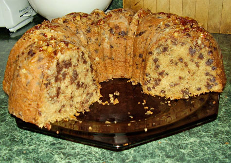 You can find this chocolate chip bundt cake recipe at myrecipes.com.