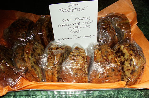 All packaged up, ready to go and be enjoyed by Open House visitors. In a world where baking from mixes seems to have become fairly common, that little sign saying the cake is all-butter and made from scratch always turns out to be a great selling point!