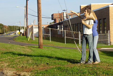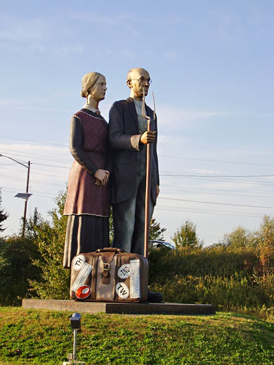 And what they’re pointing at is a possibly 30′ tall sculpture of American Gothic, the famous painting, below.
