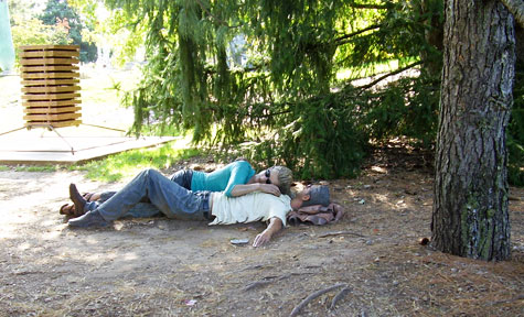 We turned a corner and came upon this couple relaxing on the ground in some quiet shade. They, too, are sculptures, so lifelike it took a moment to be sure.