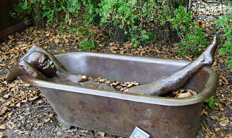 Tucked in a shady corner was a lovely bronze of a woman in the bath …