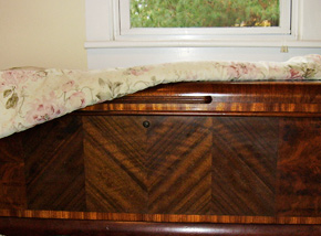 I looked out the window into the thick darkness, the only illumination a blue sensor light by my neighbor’s pond below. A thick cloud cover obscured even the idea of a star. I knelt on the Lane cedar chest that was my Mom’s hope chest, now vintage, I suppose, and was soon joined by my two cats. They purred amiably seeing as little in the dark as I did, but happy to join my watch. It was 4:30 a.m.