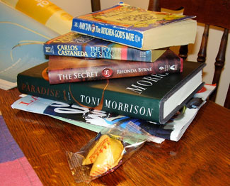 I found another book by Amy Tan, The Kitchen God’s Wife, her next after her first big success. The Joy Luck Club. That seemed like a good bet. And then I found Toni Morrison’s latest novel, Paradise, a mystery about some evil goings-on in a convent outside a small Oklahoma town. Now that sounded interesting! And then in paperback, The Power of Silence, a later book by Carlos Castaneda, and also The Secret by Rhonda Byrne … the book. (I’ve only read the web site.) What a tasty little gathering of reads for such a pittance.
