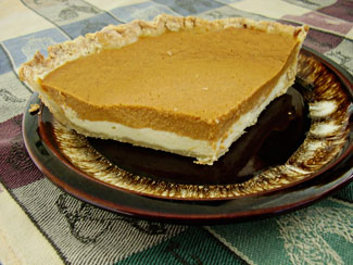 So what could make pumpkin pie even yummier? How about a layer of cheesecake underneath? This recipe appeared in a terrific but now defunct magazine, General Store, the issue over 10 years old. It is not clear exactly where the recipe came from except it was recommended by a couple from central Jersey with a passion for early American living.