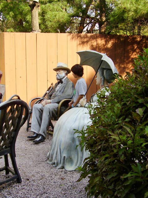In this third post on the Grounds for Sculpture you will see sculptures inspired by famous Impressionist paintings, and all are by one sculptor, Seward Johnson. As Impressionism is my favorite period of painting, I was beyond enamored while at the Grounds by each and every one. I also discovered, in perusing Seward Johnson’s website, that sculptures I have already included in previous posts are by him as well.