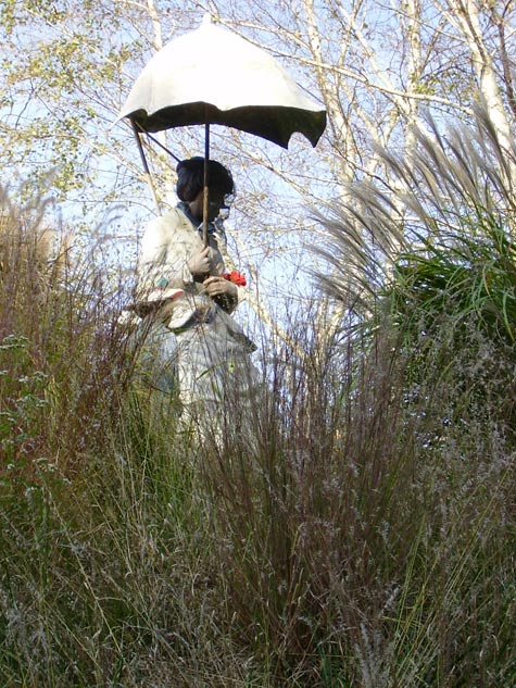 Based on Monet’s “Woman with A Parasol,” Seward named his sculpture “One Poppied Hill.” The woman and her child are indeed high on a hill. You might easily pass them by as you walk through the grounds if your eye had not already been trained to look everywhere as the sculptural gems are displayed in every manner and place imaginable.