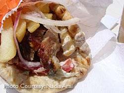 When I was older and worked in NYC, you didn’t have to go too far to find a street food vendor – they usually sold Sabrett hot dogs, hot pretzels and somewhere nearby there was always a souvlaki truck. selling souvlaki, (pictured), gyros and falafel. As I recall, everything was pretty tasty. And then more recently, working on a dead end street in an industrial area of a NJ city, (long story), we had a real food truck. It was standard silver and served a variety of pre-packaged lunch foods and sweets and on this truck, a few homemade Portuguese dishes cooked by Tony’s wife – they were always pretty good.