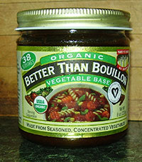 Better than Bouillon is an organic vegetarian/vegan base to use in soups and stews. It was called for in a recent recipe I made, and worked great. I just whisked the base up with the stated amount of water and voila! Perfect. Made by a company called Superior Touch, who also makes a variety of other soup bases, many organic, gravy bases, also many organic, and a variety of crockpot season mixes.