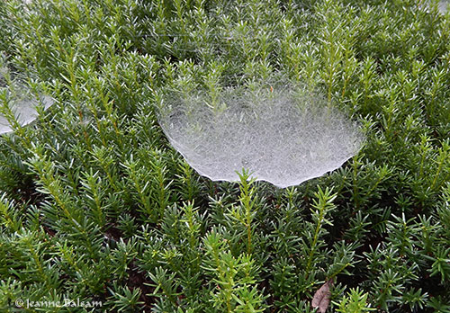 A photo does not do justice to the incredibly delicate strands and bowl shape of these spider webs.