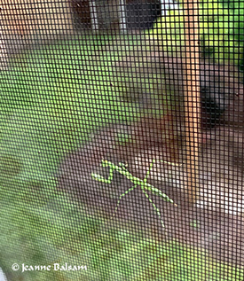 Wow – watching them emerge from their egg cases would be fascinating. I see at least one every year. One year on a second story screen – though how or why he got that high I don’t know – an adult had Claude’s full attention. Claude didn’t know what to make of it, but also didn’t bother it either.