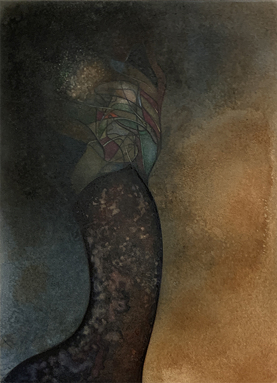 “Dogariya – The Queen’s Guard, from the series Anima Project” – Marcia Kure, 2022, Kola nut, indigo, and watercolor on board.
