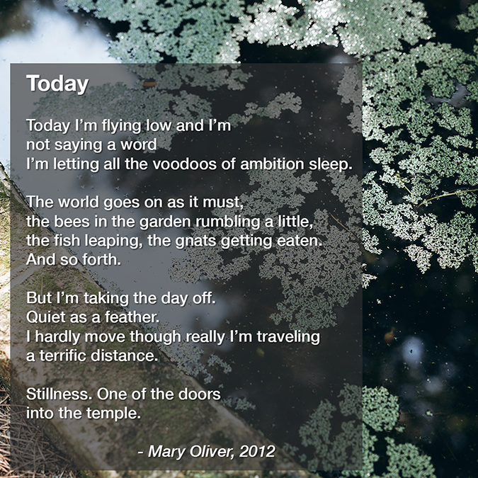 Today is the last day of National Poetry Month. We leave quietly with a poem by Mary Oliver.