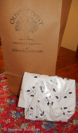 My friend and I were enjoying a petite celebration in Frenchtown today. After a wonderful meal at Pulp, a vegetarian restaurant and juice bar known for its cleanly grown food and fabulous smoothies, I’d wanted to make two stops, one at Minette’s, a chocolatier, for a gift, and Olive with A Twist, a store that specializes in the most vast array of oils you could imagine, specialty cheeses and other delights. Minette’s was closed for vacation, so we moved on to our next stop. The sandwich board out front advertised “Watermelon Balsamic” and “Coconut Gouda”.  An unusual combination to be sure, but how bad could it be?
