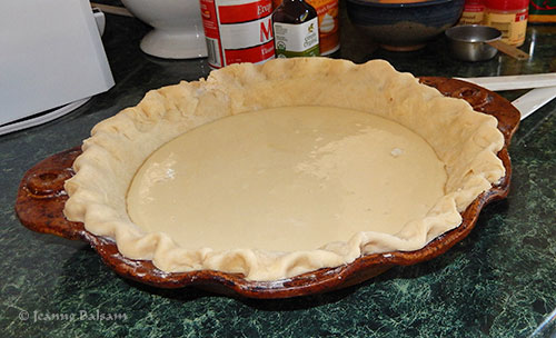 Now here’s what drew me to this pie and why they call it a “Paradise” Pumpkin Pie. This is the Paradise layer – a smooth mixture of cream cheese, an egg, some sugar, and vanilla. In essence, a layer of cheesecake to go under the pumpkin. Yum, right? Wait …