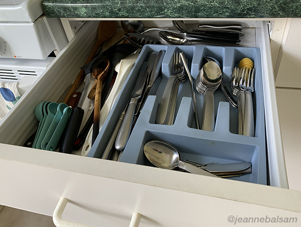 The next payoff came in my taking everything out of the drawer; thoroughly cleaning it all, plus the interior of the drawer itself. With the extra space, I did some happy re-arranging.
