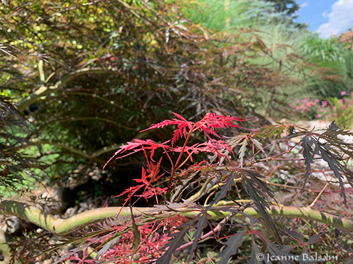 One of two dwarf red maples on the property, this one is more a deep bronze than a shade of red. Unless, of course, you’re a little newbie sprout. This close-up doesn’t tell you how tiny the new leaves are in comparison to the whole, which is huge. But it might tell you why it brings a smile every time I look at it.