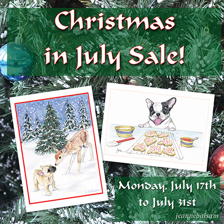 Trying something new with my Etsy shop – a Christmas in July sale to reach some French Bulldog lovers with my Christmas/holiday cards, and possibly some “everyday” ones as well.