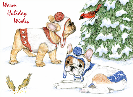 Alternatively, maybe you’d like to send a notecard to someone at Valentine’s to let them know you love them and are thinking of them. Have kids? Maybe they’d like to send one to Grandma. The artwork of a mischievous Frenchie pup eyeing some cookies is, of course, also mine, and I can’t help but think