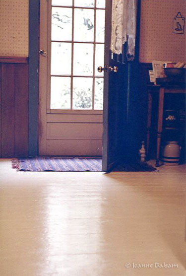 I don’t have a lot of photographs of the interior of the house. It had original hardwood – walnut, I believe – floors and stairs. The kitchen’s wide planks had already been painted, so once settled in, I gave it a new high-gloss paint job. Out the kitchen door was a patio.