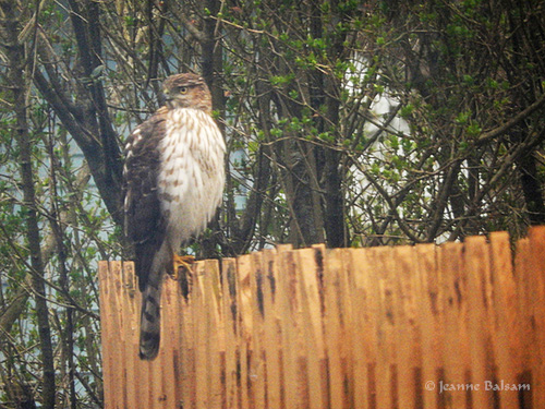 The other evening as I was “closing up shop” on my day, putting files away, and cleaning up my desktop, I happened to look out the window and spied a bird on my fence I’d never seen before. It was a hawk, but too small to be a red-tailed hawk. What was it?