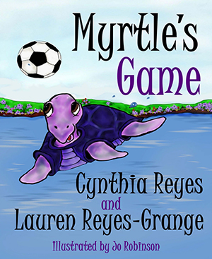 But Cynthia wasn’t done yet, and neither was Myrtle. In late 2018 Cynthia brought Myrtle’s sequel into the world, again accompanied by Jo Robinson, but this time, also joined by her daughter, Lauren Reyes-Grange. In Myrtle’s Game, Myrtle and her friends, skilled at playing a game that looks just like soccer in the water, ask the woodland animals if they can play soccer with them. Told that turtles can’t play soccer (everyone knows that!), squirrel tells them to come back when they can move faster. Daunted at first, the turtles hatch a plan where Myrtle finds a way to use her talent to succeed on land. How does she do it? You’ll have to read the book!