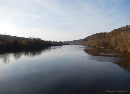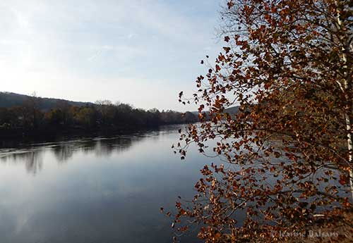 Looking north, the Delaware is a sea of calm. Whether due to rain or the extended warmth of much of the fall season, there were not many of the brilliant oranges and reds to be found among the trees this year. Instead, the green leaves seemed to fade to dull yellows and browns.