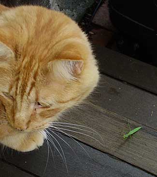 Two fearless creatures – Pumpkin and a young praying mantis.