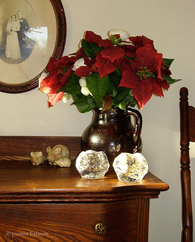 Inside in the evening, things were much calmer. I’d been gifted a Crate and Barrel flameless candle for Christmas and it looks so lovely in this lantern. You can forget – at least until the next morning – that this is what’s waiting outside …