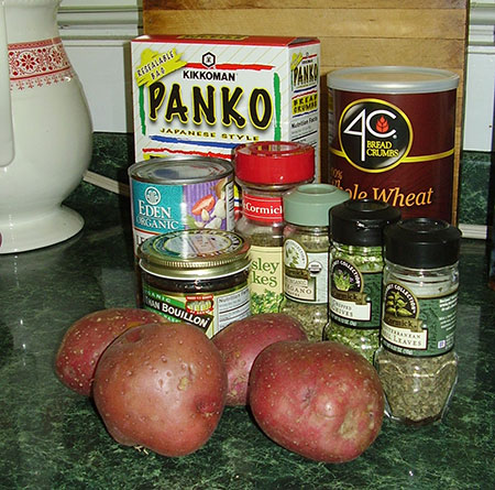 First, gather the ingredients … hard to find some of these organic, but I got what I could. The recipe called for whole wheat panko crumbs which I couldn’t find, so I used a mixture of plain panko crumbs and whole wheat bread crumbs.