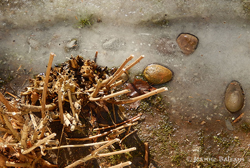 I looked down, over the porch railing, and saw an array of amazing textures and light. Just last week, it had been -1˚ in the morning, and these warm temps were resulting in a momentary thaw and so many abstract visions. I grabbed my camera and took some photos because … well, I needed to.
